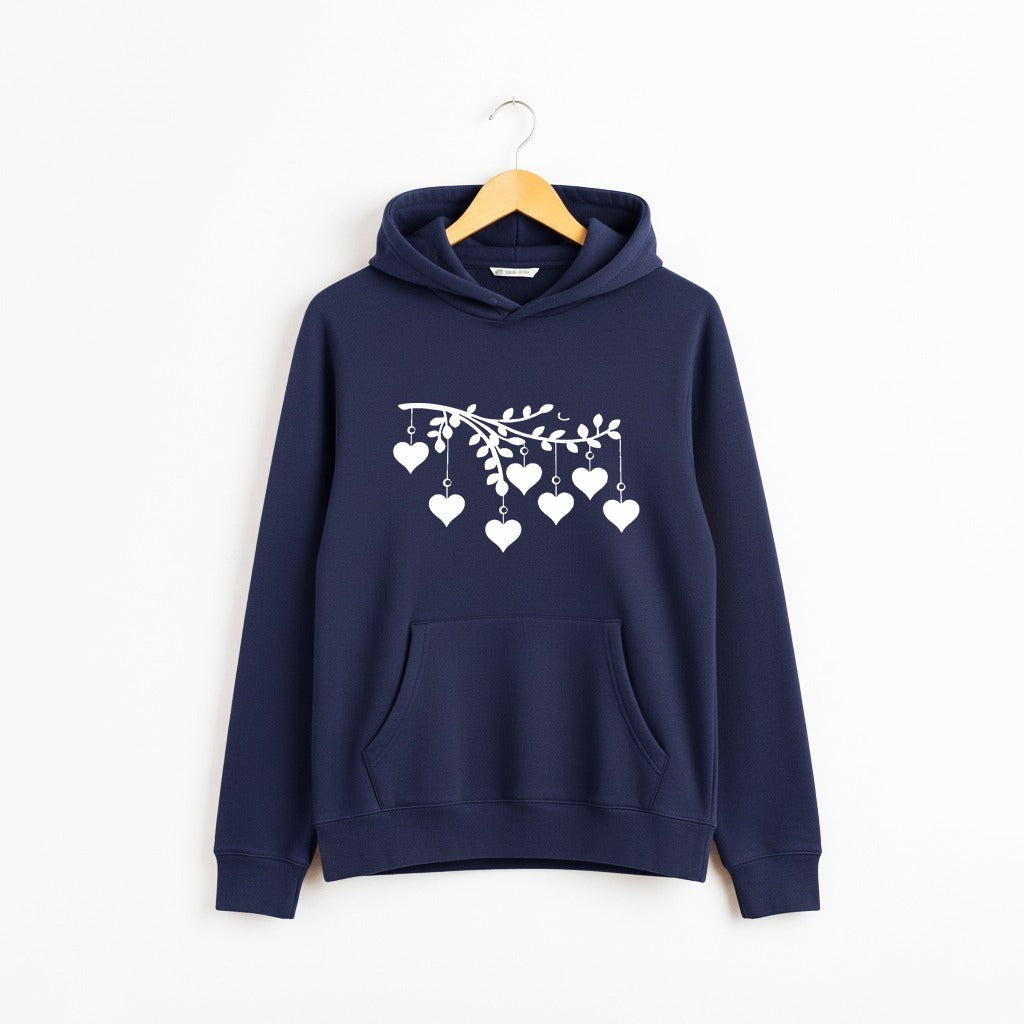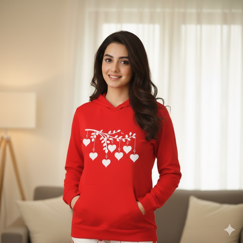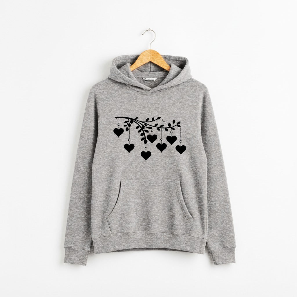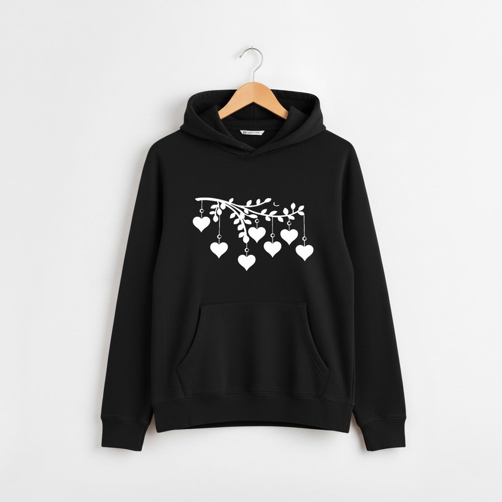 Women's Hanging Hearts Printed Hoodie with Kangaroo Pocket