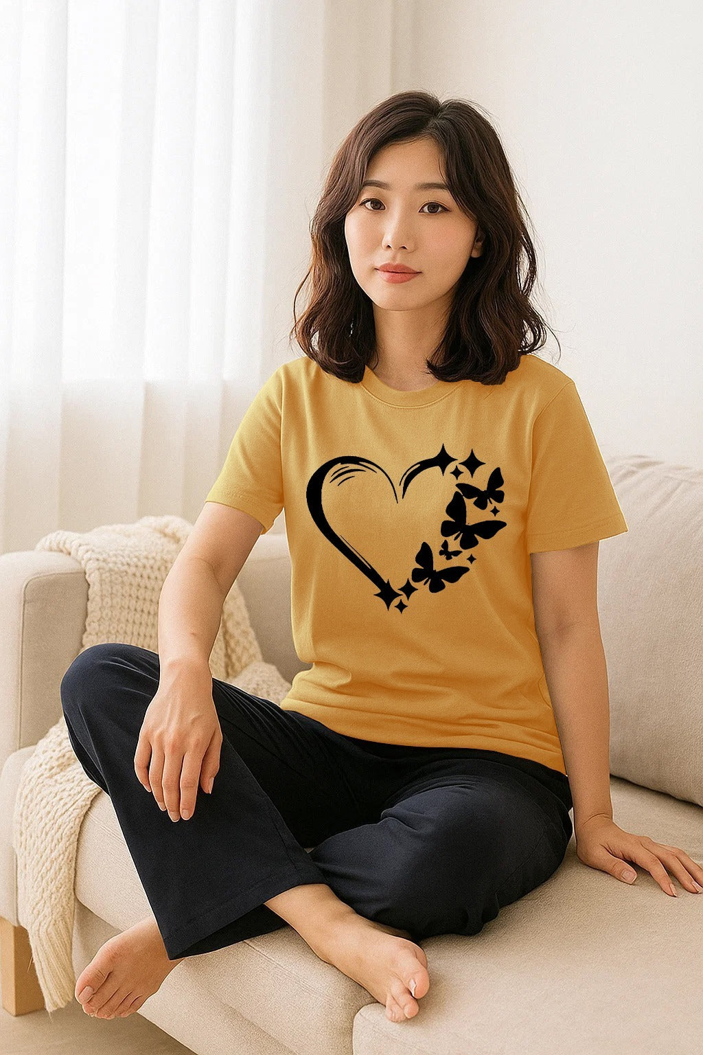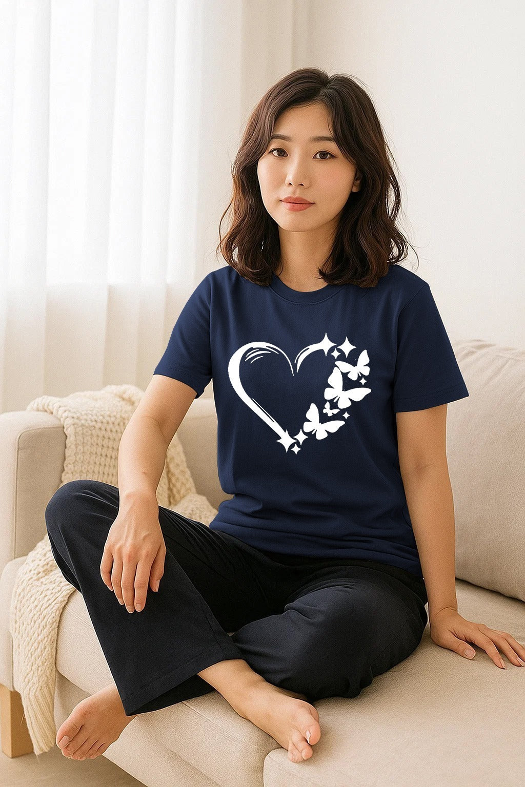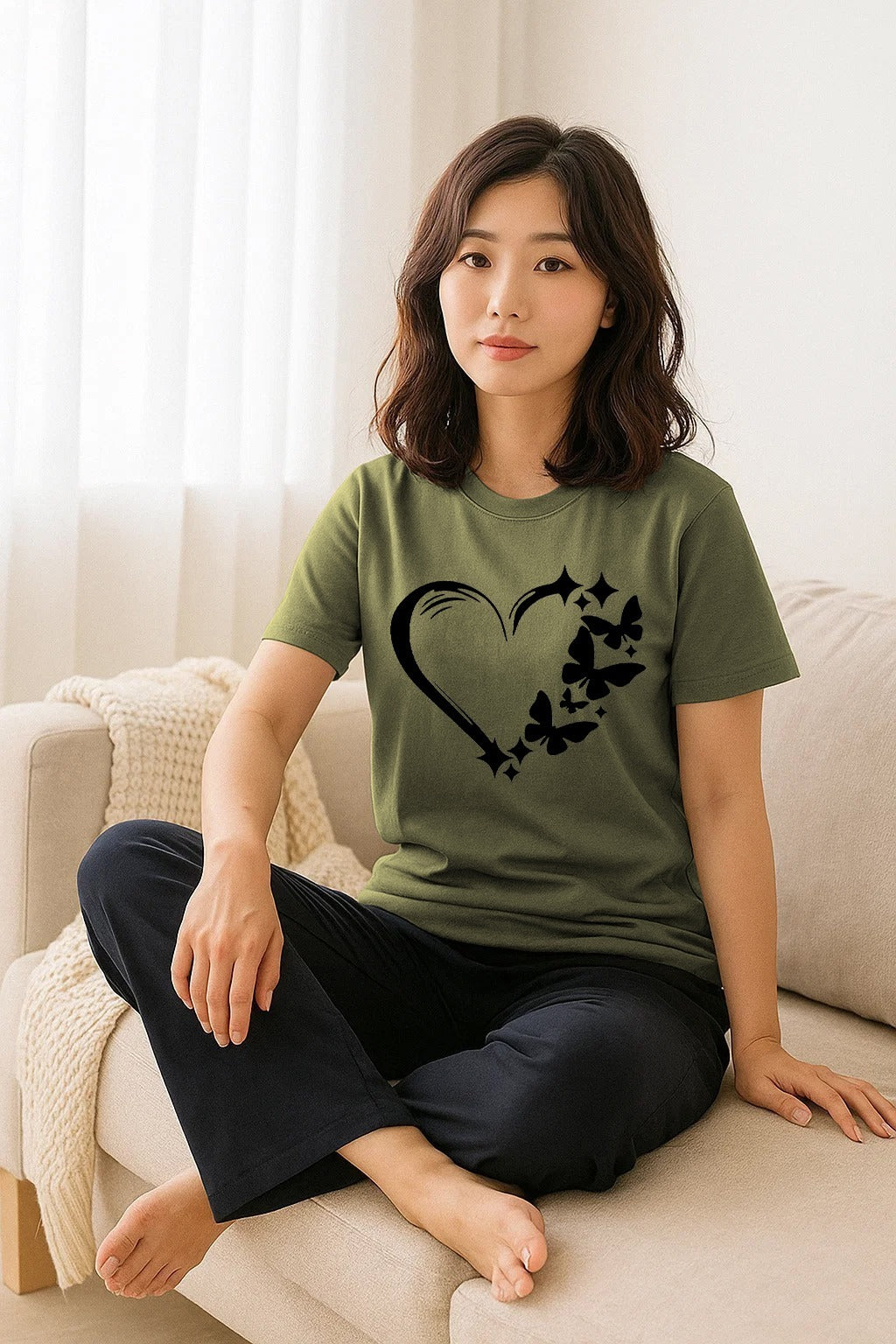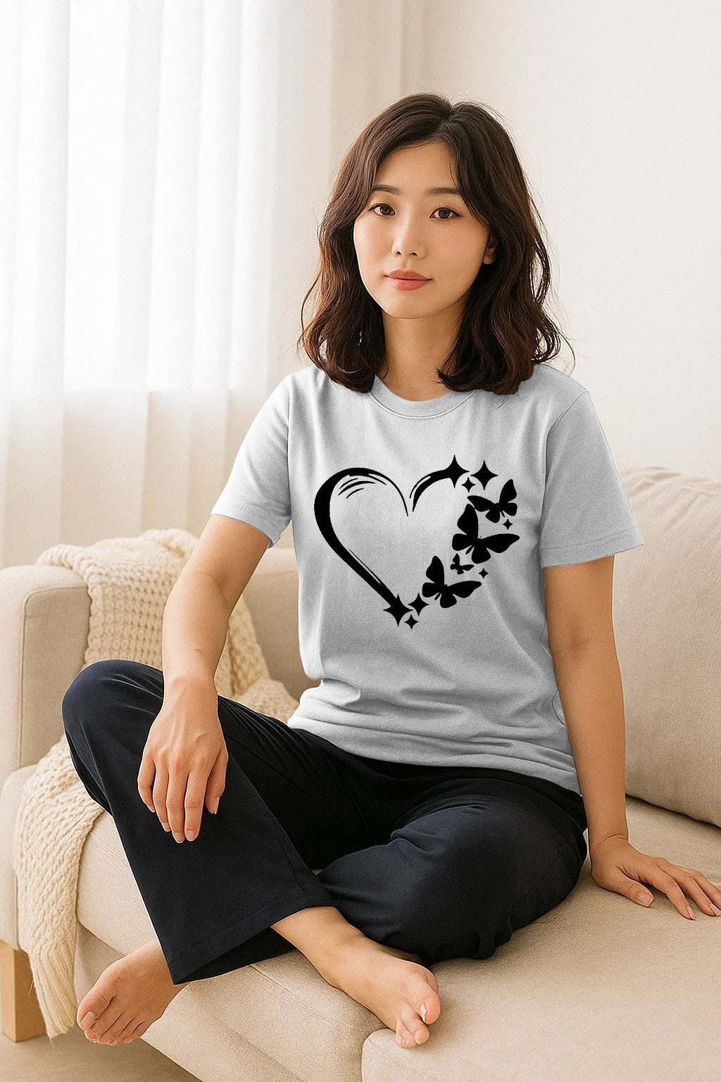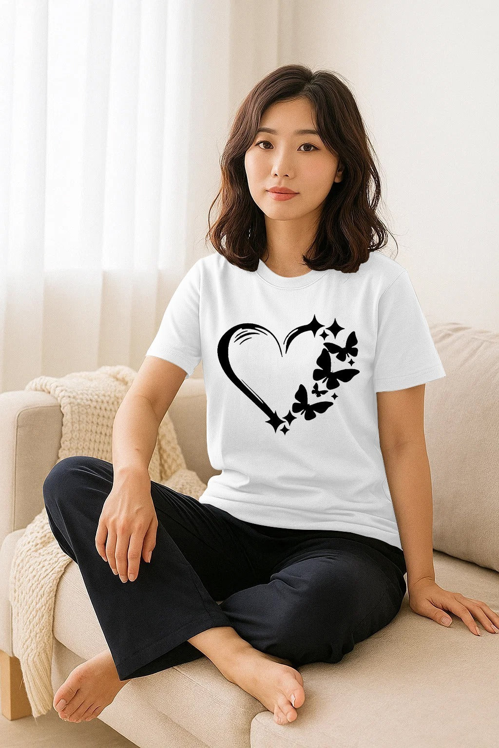 Chic Red Heart with Butterfly Graphic T-Shirt - Feminine & Stylish Top