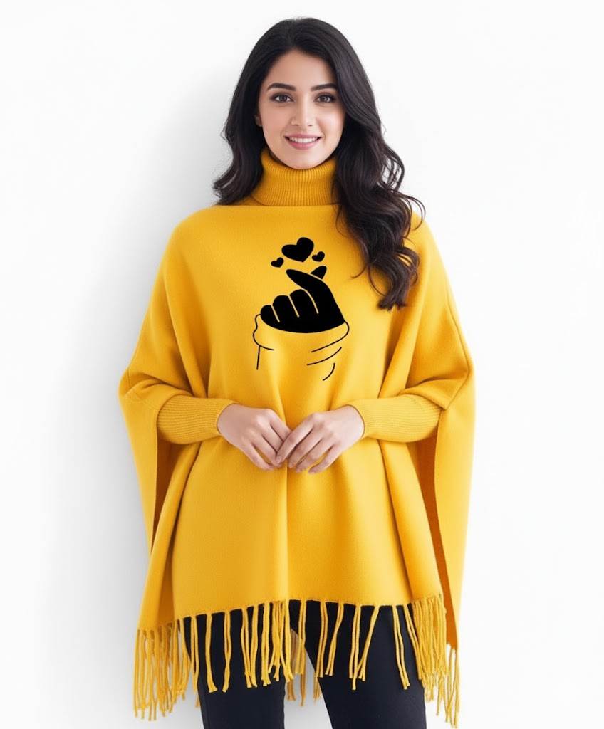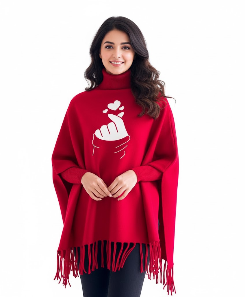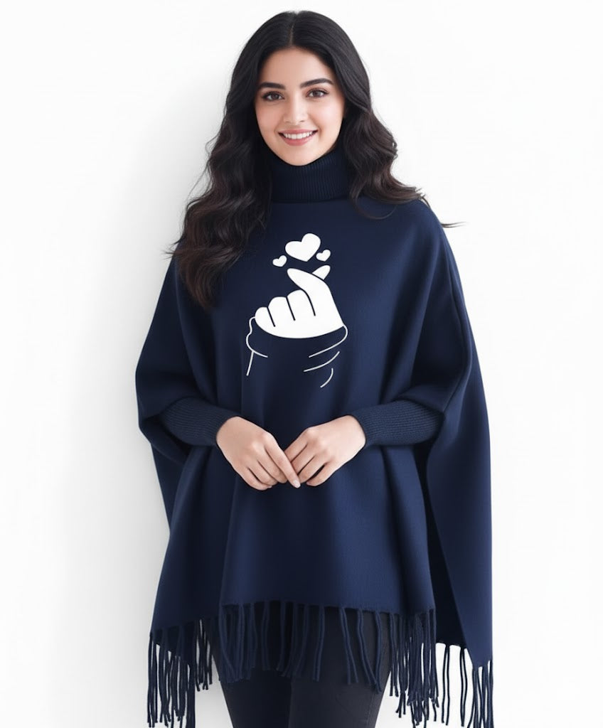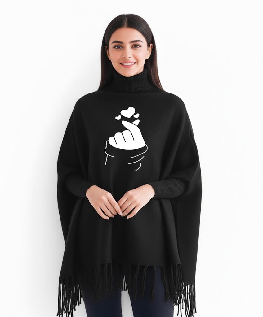 Finger Heart Printed winter ponchun for women