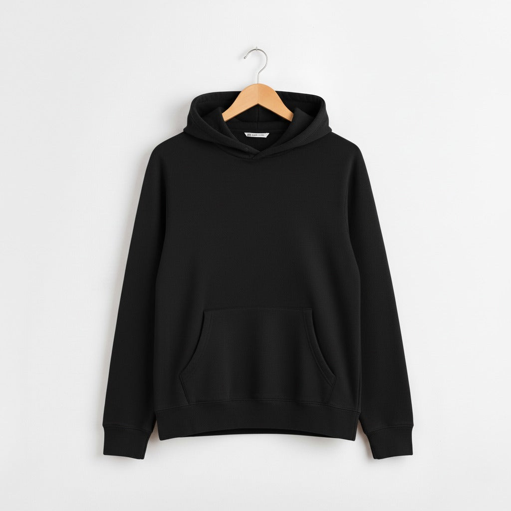 ladies Classic black Pullover Hoodie with Kangaroo Pocket